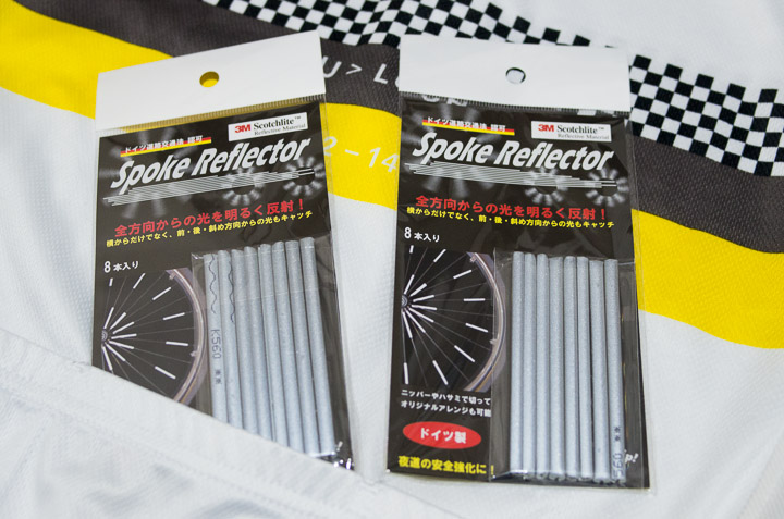 そこでロードに装着しているライトや反射材を増やして、周囲の人達—車道を走るから、特に車やバイク—からの視認性を上げるために2つの製品を購入。1つは今回のスポークリフレクター、2つめはファイバーフレア。これは次回書くつもり。