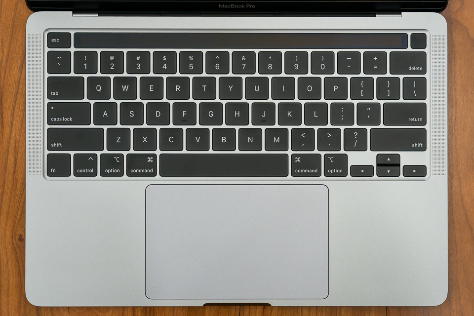 MacBook Pro 13 2020を上から見たところ。まずカーソルキーとタッチバー周りの変化に気付く (c)Bisoh